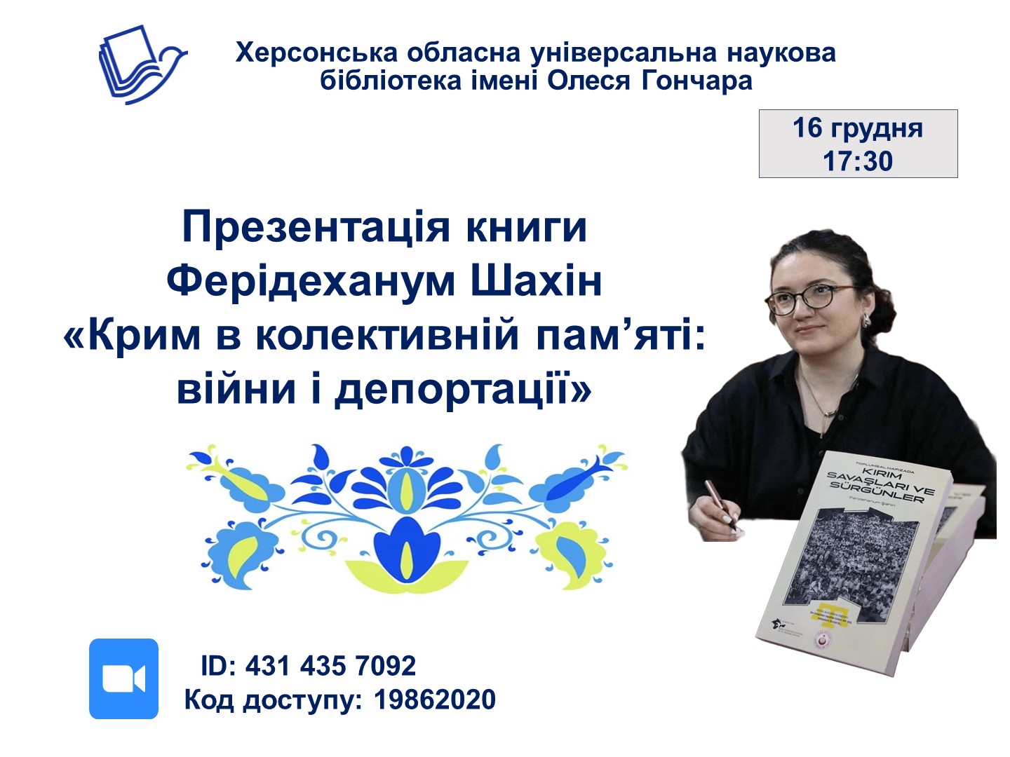 Запрошуємо на онлайн-презентацію важливого дослідження Ферідеханум Шахін – «Крим в колективній пам’яті: війни і депортації». Видання присвячене війнам на території Кримського півострова, депортаціям, системним утискам і переслідуванням кримських татар, що здійснювалися росією протягом століть. Авторка аналізує, як ці події відобразилися в народній творчості. Праця, створена у 2016 році як магістерське дослідження, зберігає свою актуальність і сьогодні, адже репресії проти кримськотатарського народу продовжуються. Ферідеханум Шахін – випускниця магістратури університету Газі (факультет тюркської народної літератури), активістка кримськотатарської діаспори в Анкарі.