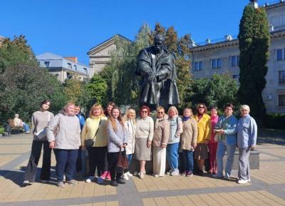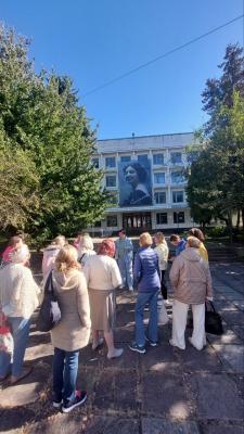 Провідна бібліотекарка відділу соціокультурної діяльності нашої книгозбірні Олена Бджола розказала екскурсанткам про незламну борчиню за незалежність України Славу Стецько; покровительку Тернополя святу Теклю; всесвітньовідому мандрівницю і тревел-блогерку Софію Яблонську; «Незрівнянну мадам Баттерфляй» Соломію Крушельницьку.