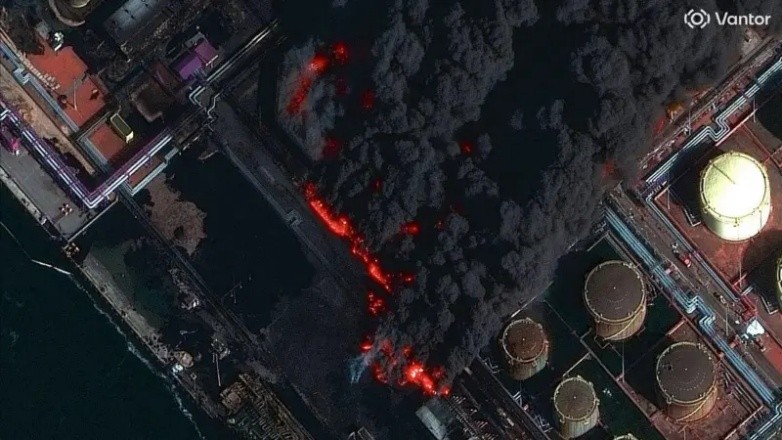 Супутниковий знімок російського порту Усть-Луга після атаки. Фото: ВВС