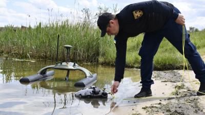 Для розмінування водойм працівники ДСНС використовують підводні роботи, їх можна віднести до категорії дронів. Ці «розумні» прилади мають відеокамеру і сонари (гідролокатори).