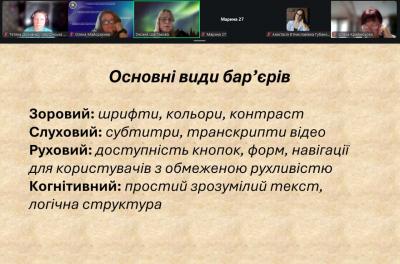Під час семінару освітяни дізналися правила використання шрифтів та контрастності, особливості створення відео- та аудіопродуктів.